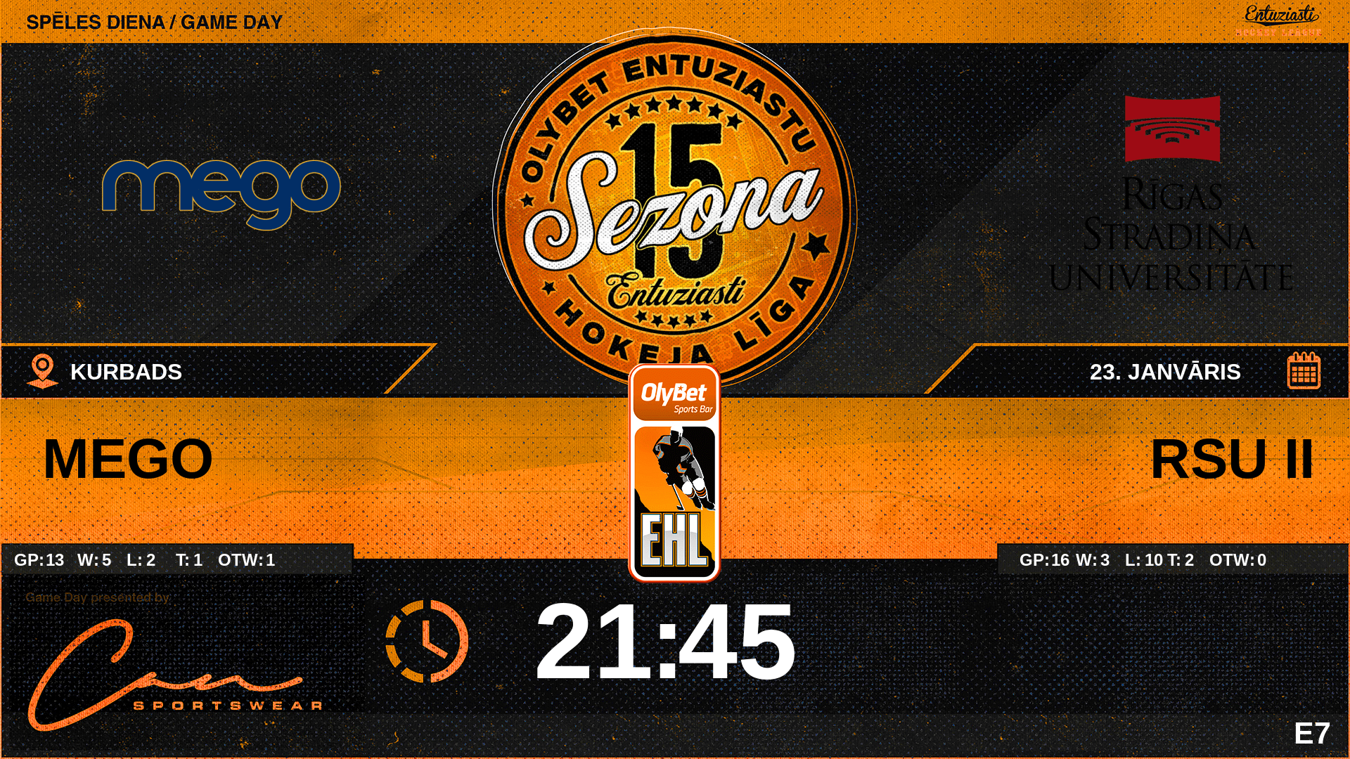 | 00:00 | MGO | GK In | #99 Jurijs Burdakovs |