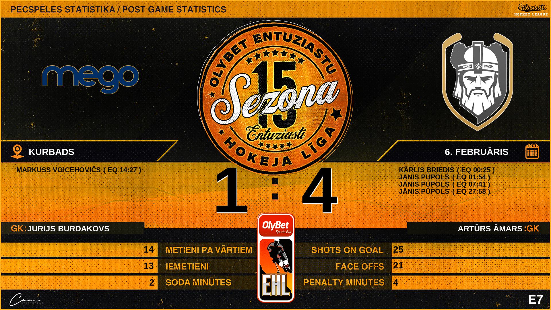 | 14:27 | MGO | Vārti (EQ) | #6 Markuss Voicehovičs, piespēles: #2 Mairis Bērziņš |