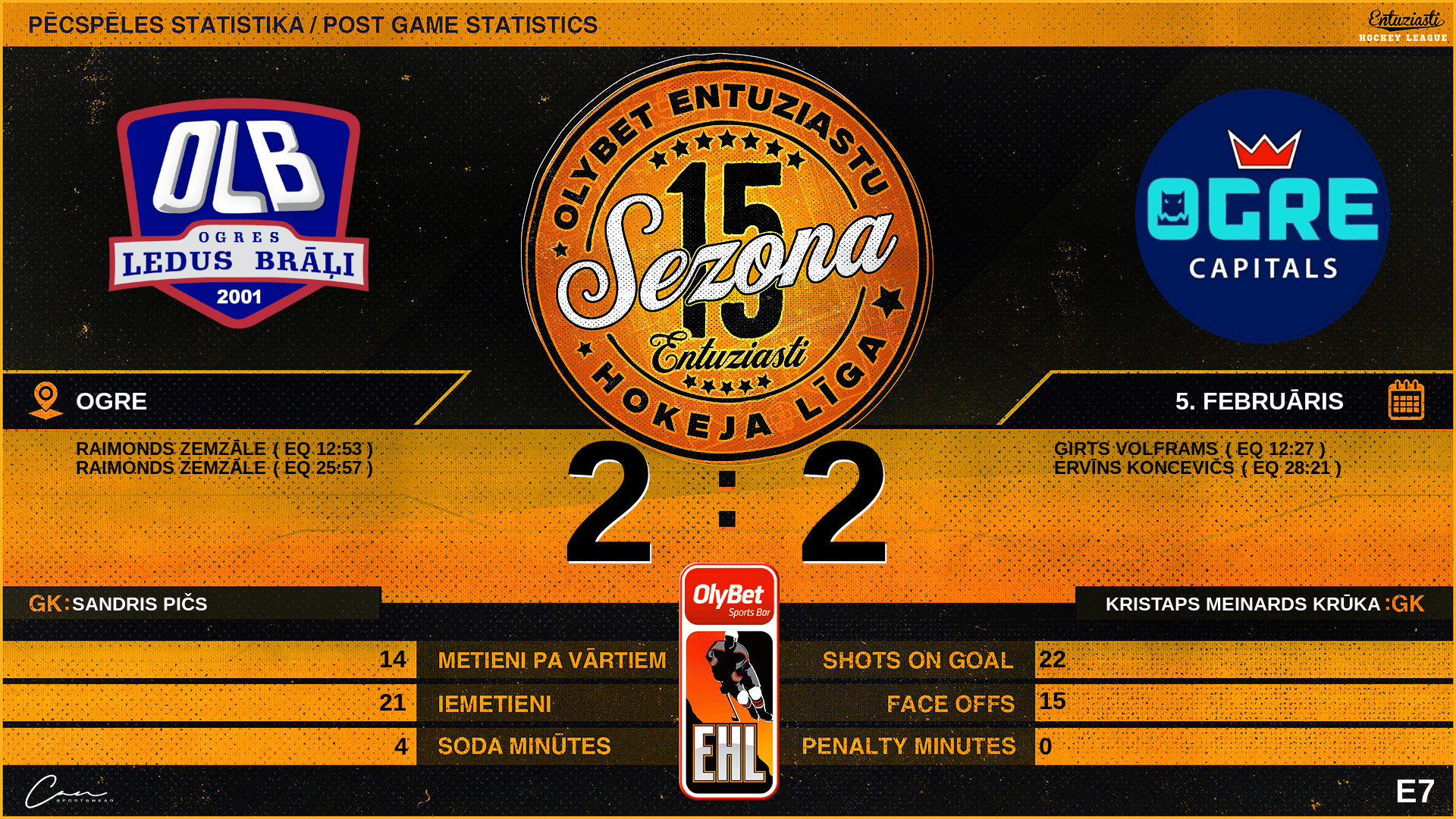 | 28:21 | OCP | Vārti (EQ) | #14 Ervīns Koncevičs, piespēles: #49 Rolands Paškevičs |