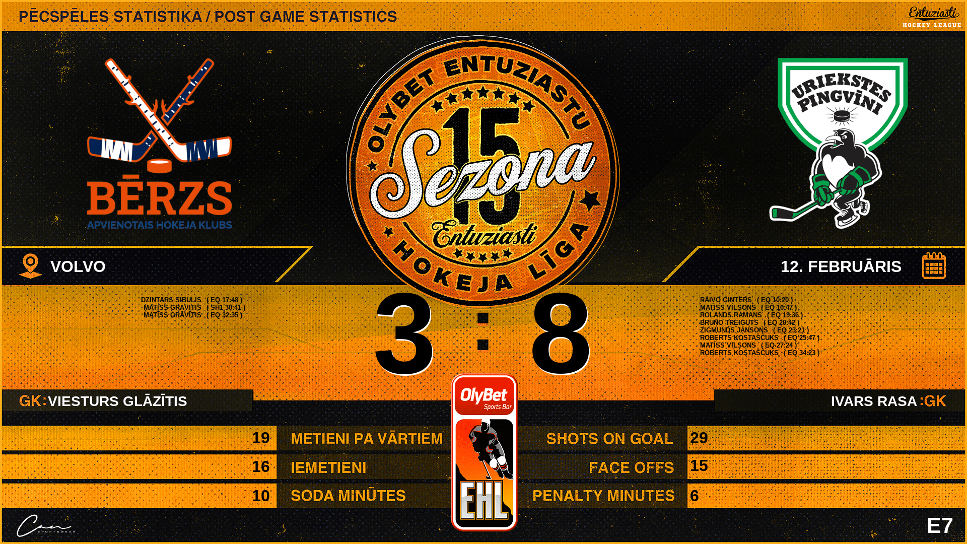 | 34:23 | UPG | Vārti (EQ) AHK 3 : 8 UPG | #23 Roberts Kostaščuks |
