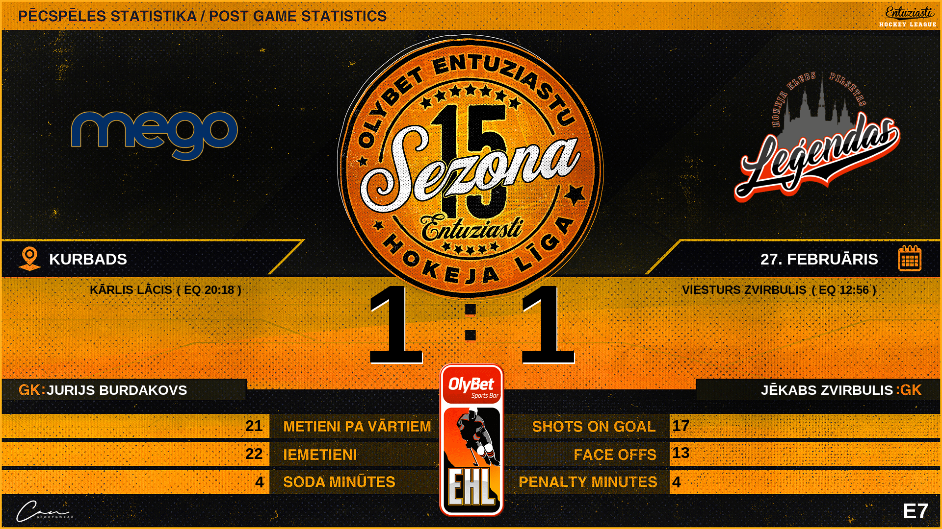 | 12:56 | PL7 | Vārti (EQ) MGO 0 : 1 PL7 | #51 Gundars Blūms, piespēles: #55 Oskars Ozols, #4 Viesturs Zvirbulis |