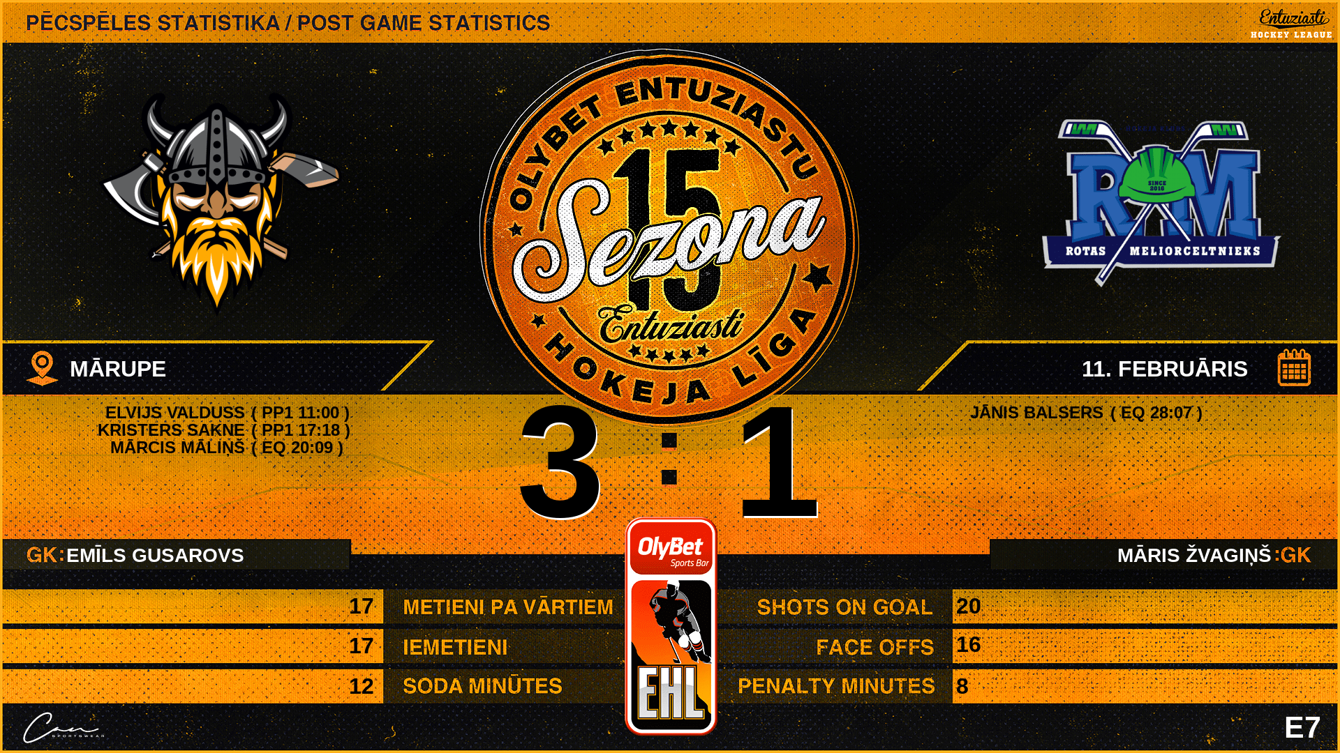 | Galvenais tiesnesis | Oskars Skarnelis (REF) |