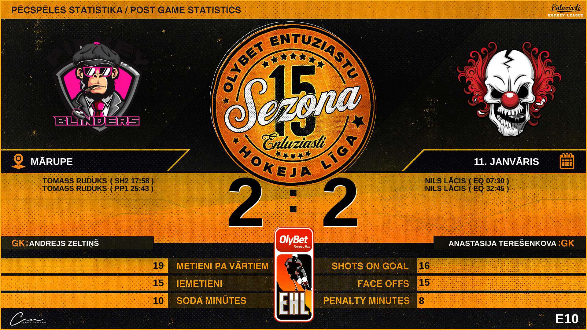 | 00:00 | PB2 | GK In | #1 Andrejs Zeltiņš |