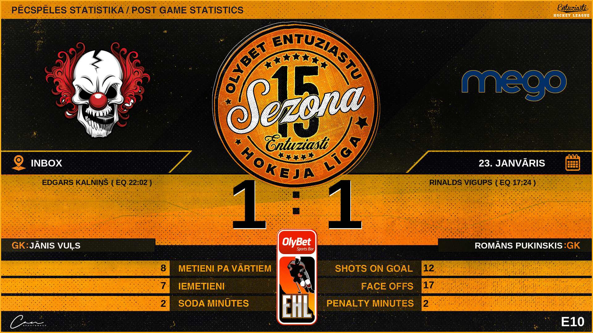 | 00:00 | CR2 | GK In | #69 Jānis Vuļs |