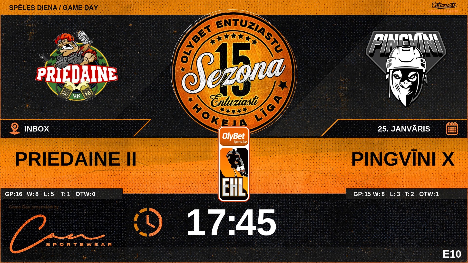 | 00:00 | PNX | GK In | #72 Ivars Zariņš |