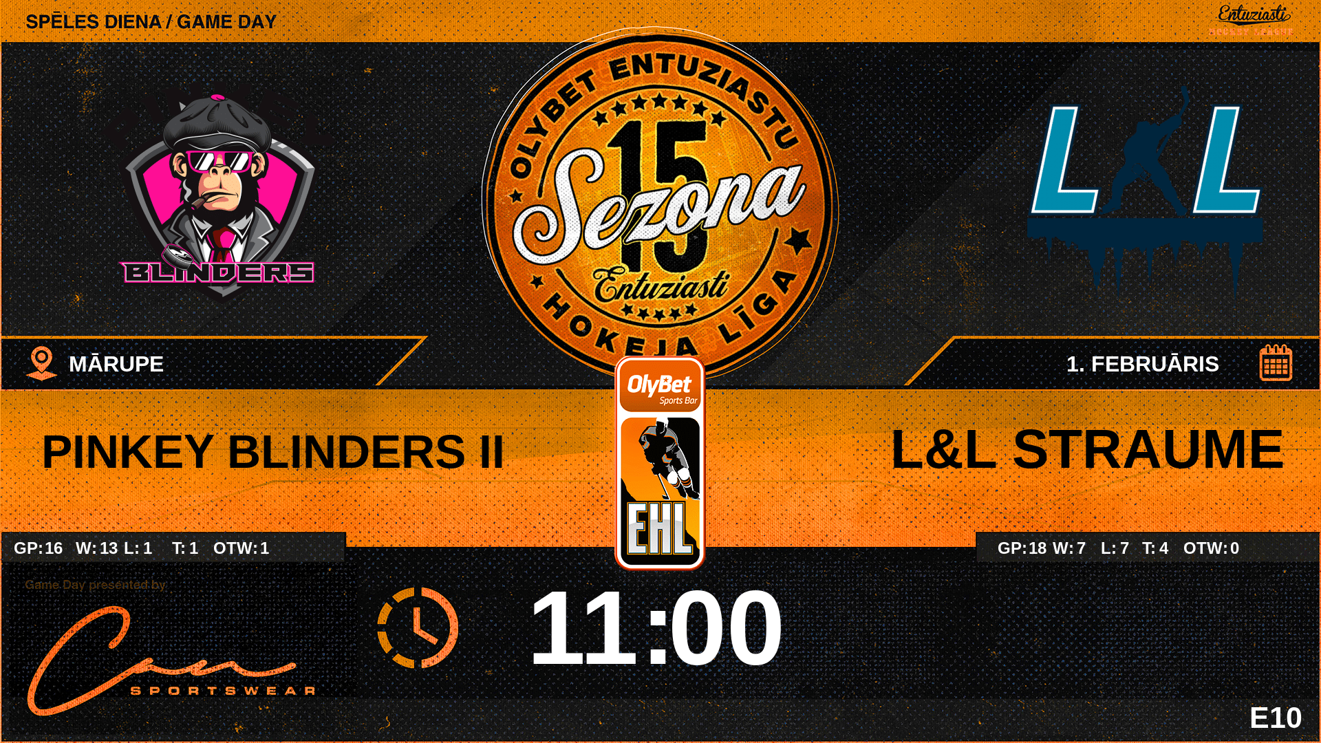 | 00:00 | PB2 | GK In | #1 Andrejs Zeltiņš |