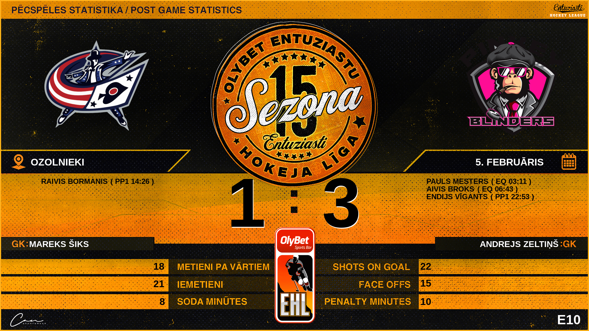 | 22:53 | PB2 | Vārti (PP1) | #28 Endijs Vīgants, piespēles: #35 Artūrs Krists Krūklītis |