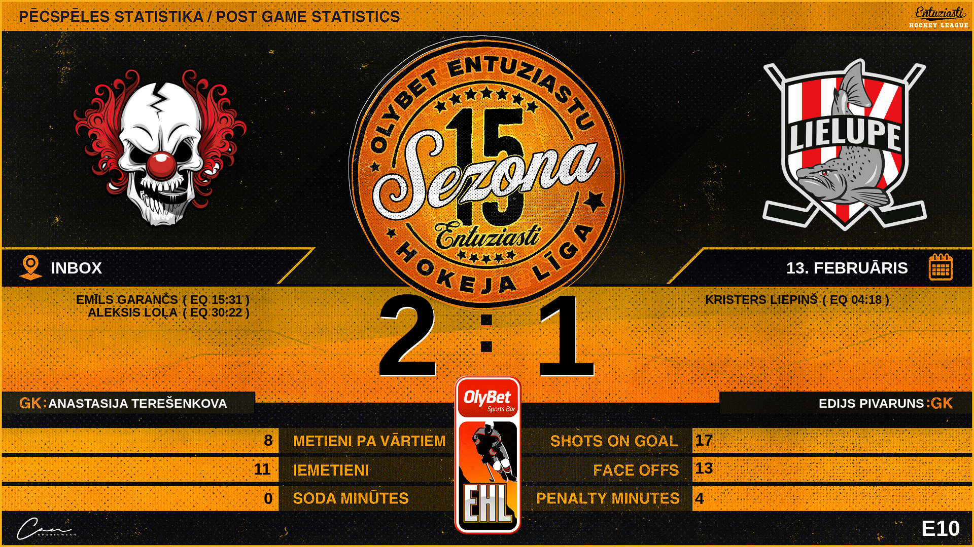 | 94 | Ernests ČAKŠS | D | 0 | 1 | 1 | 2 |