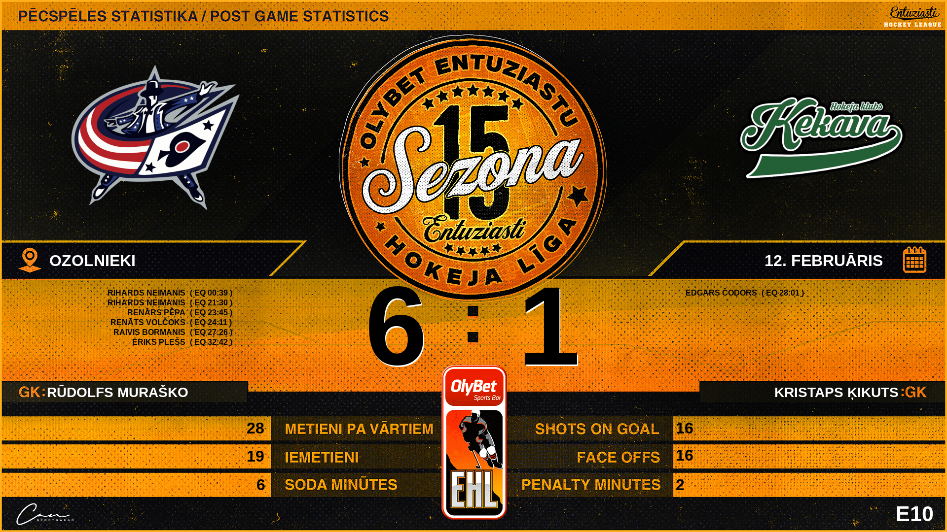 | 36:00 | ĶK5 | GK Out | #41 Kristaps Ķikuts |