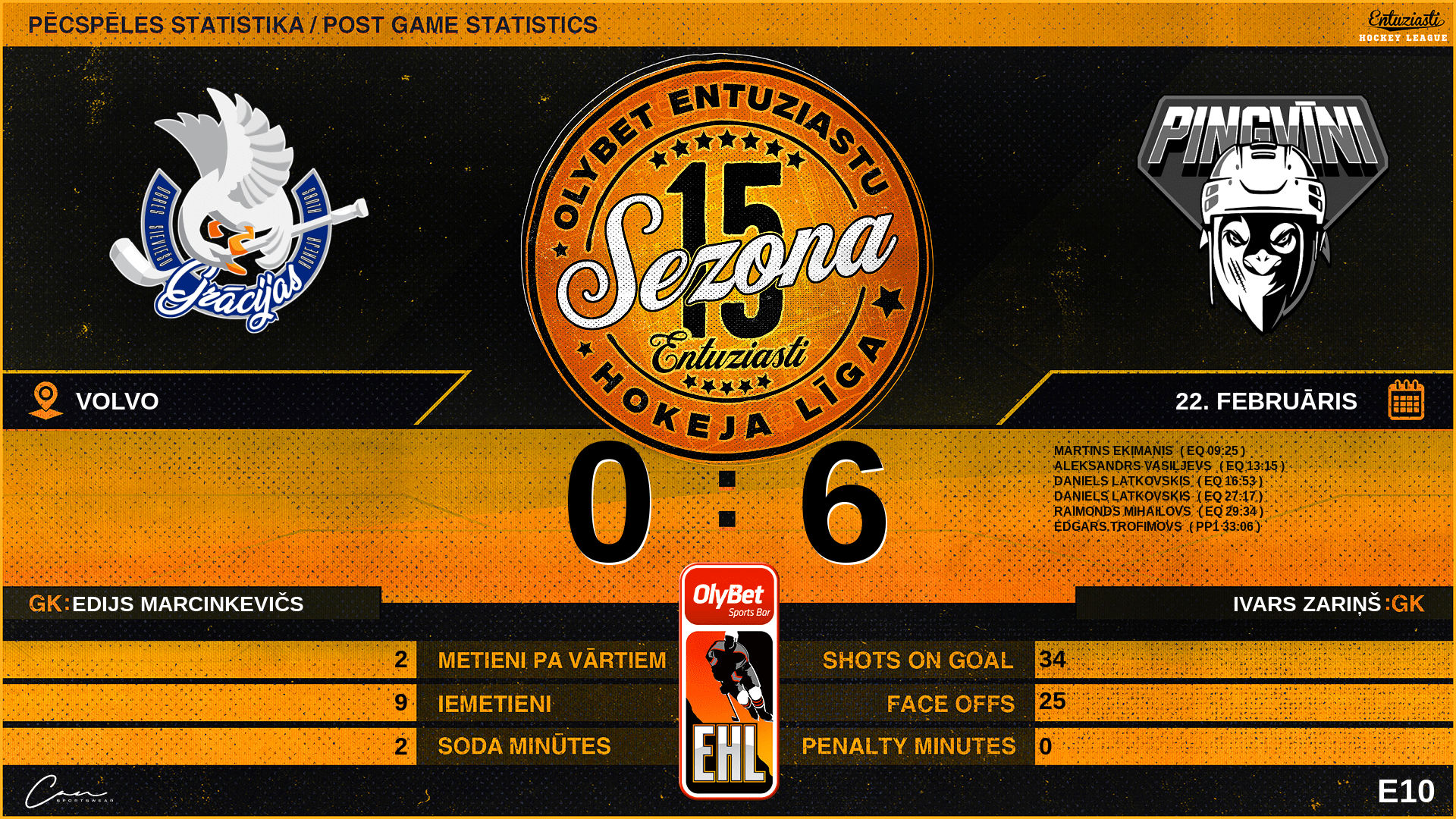 | 33:06 | PNX | Vārti (PP1) OGC 0 : 6 PNX | #71 Edgars Trofimovs, piespēles: #87 Aleksandrs Vasiļjevs |