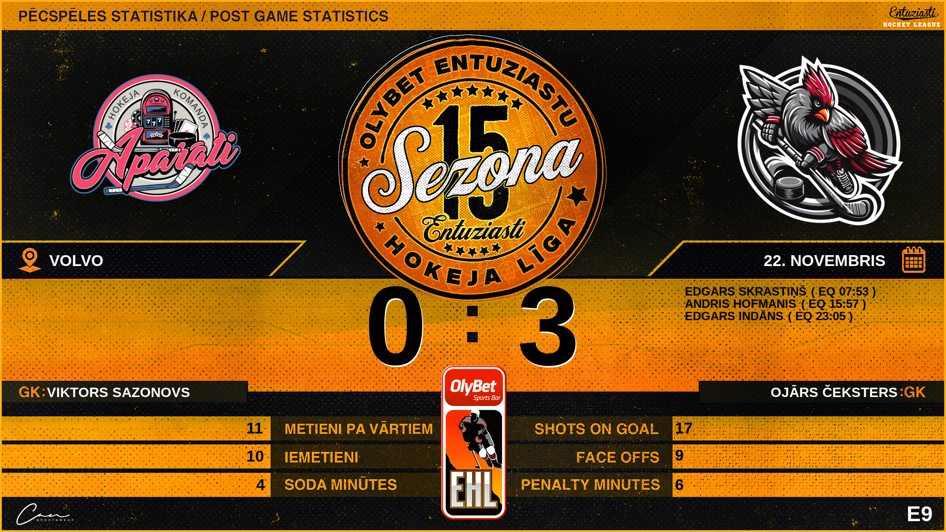| 15:57 | PK2 | Vārti (EQ) | #16 Andris Hofmanis |