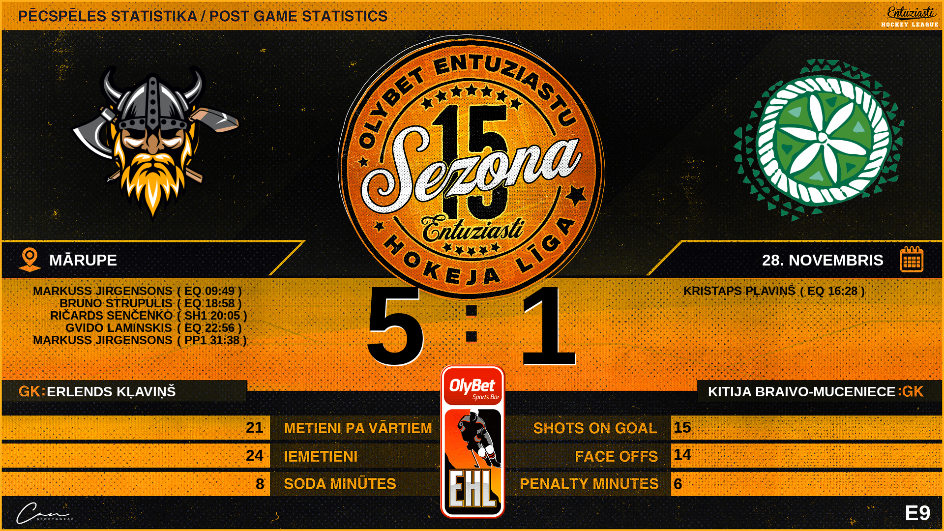 | 18:58 | VN3 | Vārti (EQ) | #32 Bruno Strupulis |