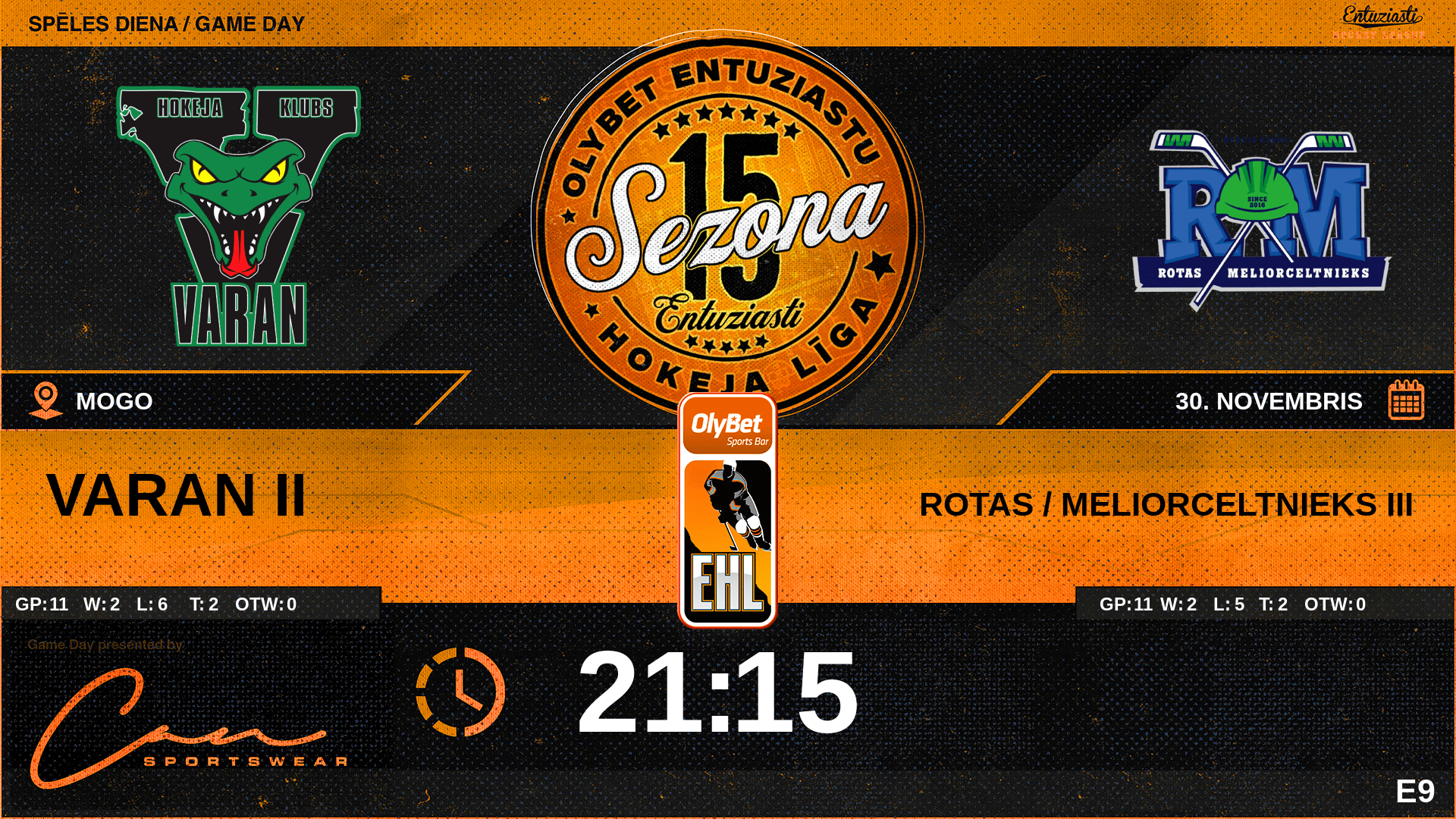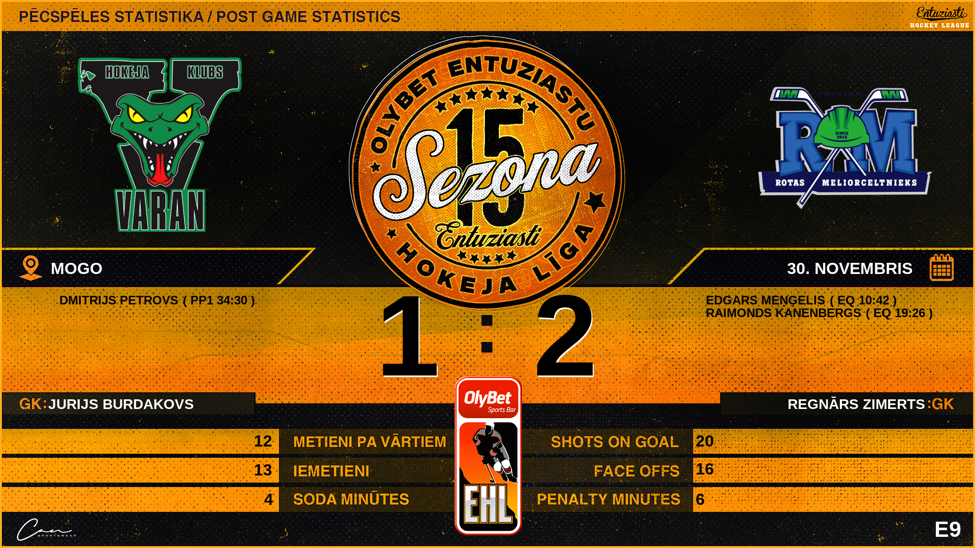 | 19:26 | RT3 | Vārti (EQ) | #70 Raimonds Kanenbergs, piespēles: #27 Jānis Miķelšteins |