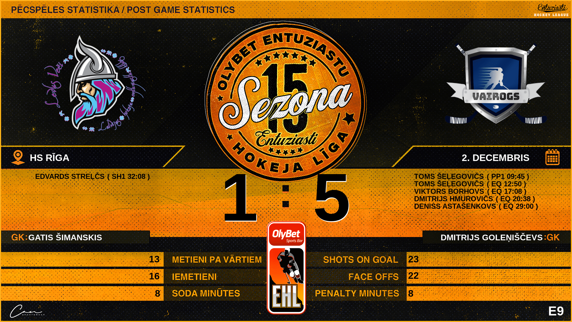 | 12:50 | VG2 | Vārti (EQ) | #53 Toms Šeļegovičs, piespēles: #91 Stanislavs Kuzmičs |