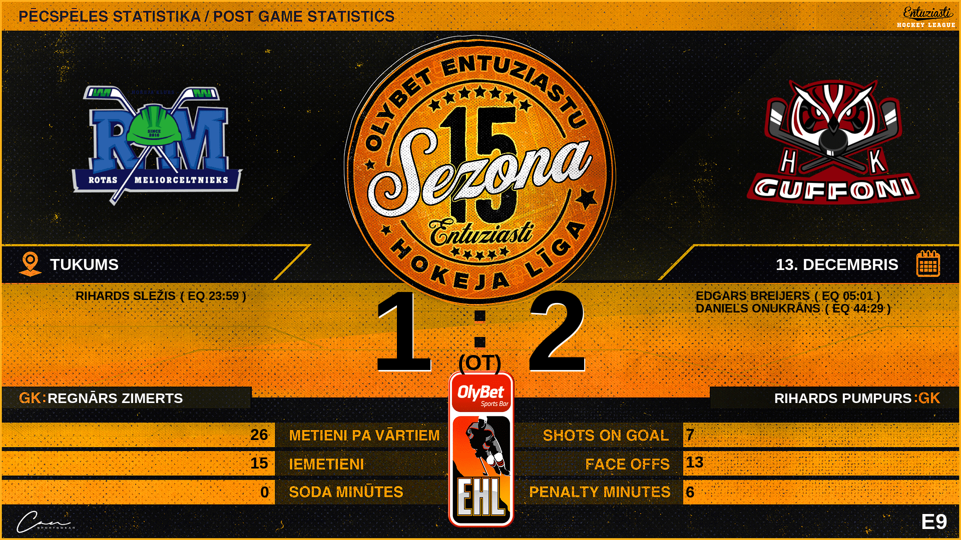 | 05:01 | GFN | Vārti (EQ) | #57 Edgars Breijers, piespēles: #24 Jānis Mucenieks, #10 Mārtiņš Dreimanis |