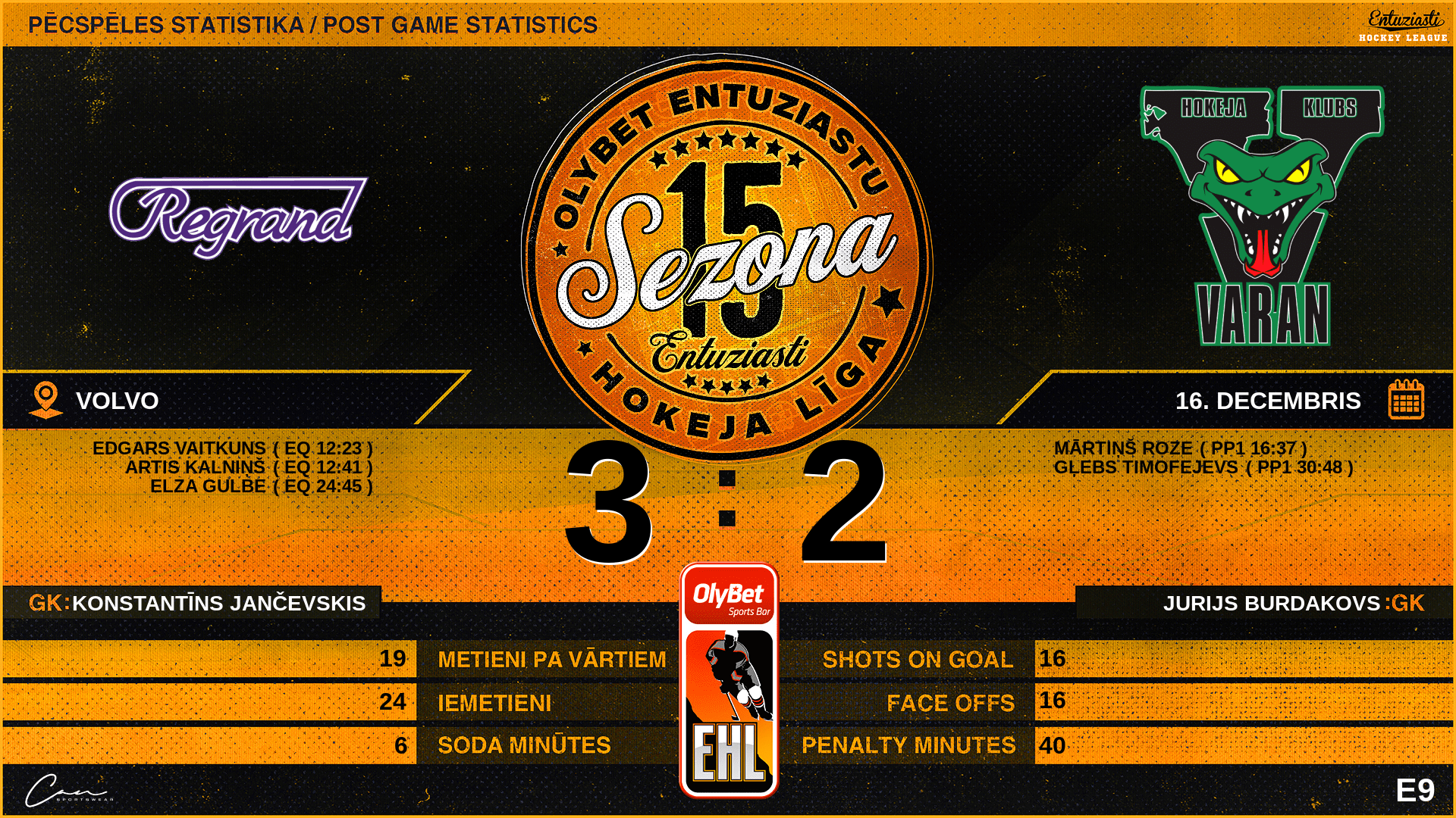 | 35:48 | VR2 | GK Out | #84 Jurijs Burdakovs |