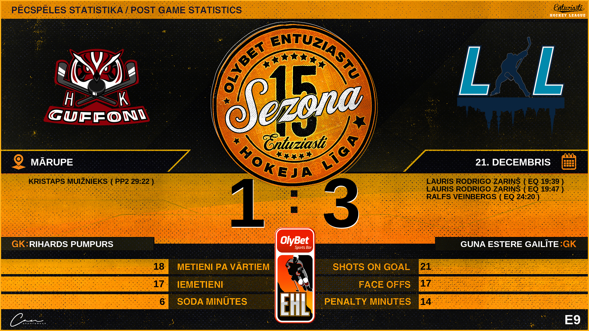 | 19:47 | LLS | Vārti (EQ) | #97 Lauris Rodrigo Zariņš |