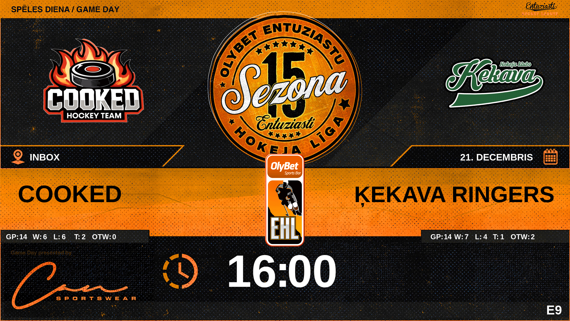 | 00:00 | ĶE5 | GK In | #99 Gatis Zviedris |