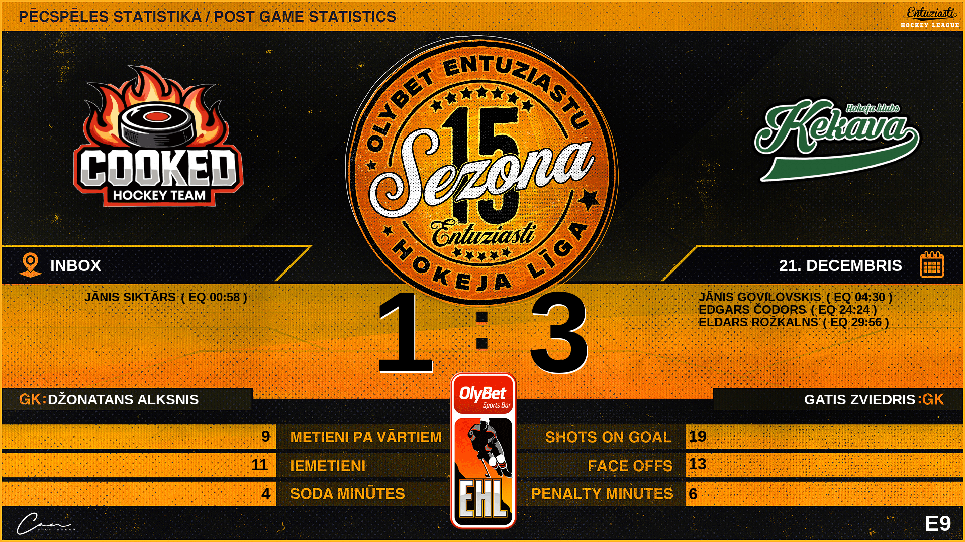 | 10:21 | ĶE5 | Noraidījums | #66 Edgars Legzda - Cross-checking (2 min) |