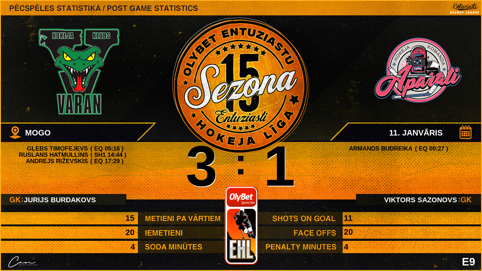 | 00:00 | VR2 | GK In | #84 Jurijs Burdakovs |
