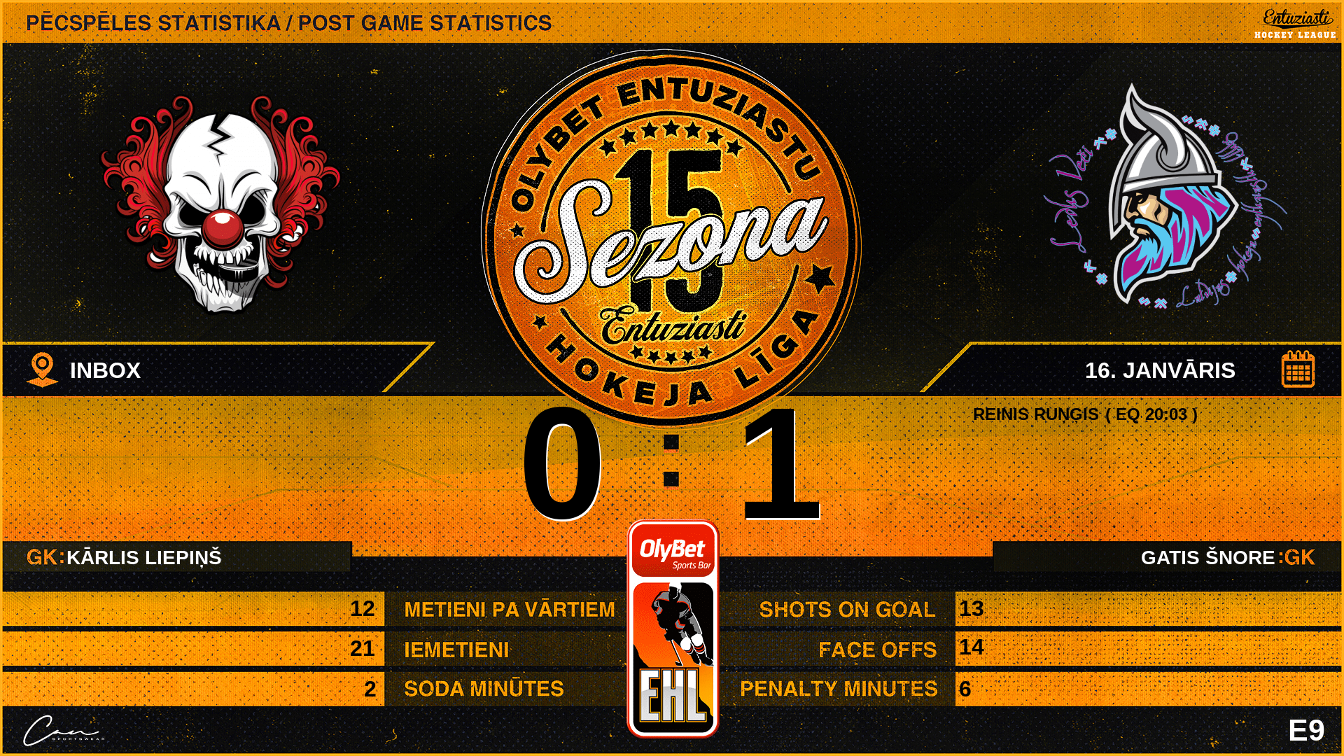| 00:00 | LV2 | GK In | #27 Gatis Šnore |