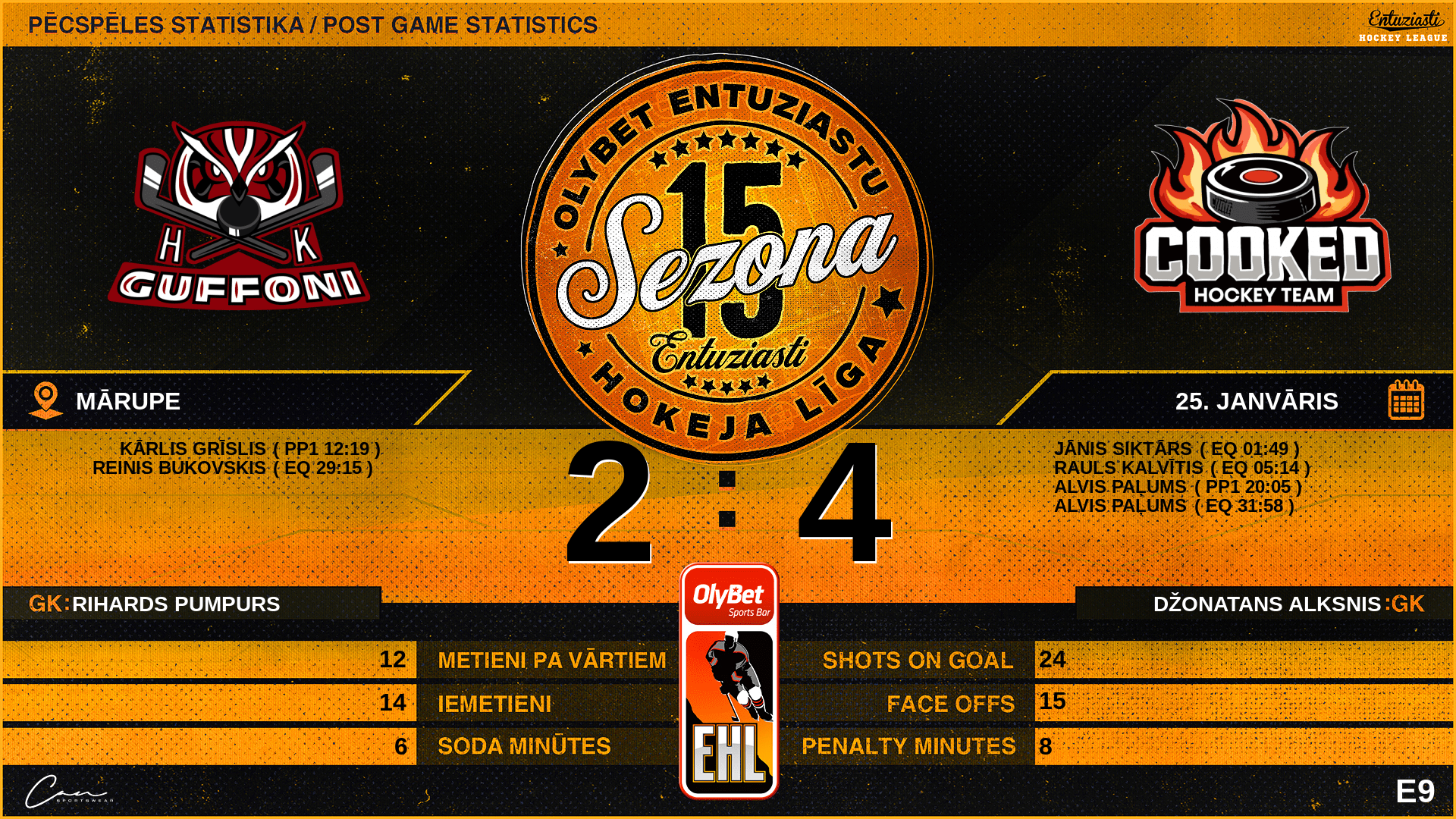 | 12:19 | GFN | Vārti (PP1) | #81 Kārlis Grīslis, piespēles: #88 Daniels Onukrāns, #10 Mārtiņš Dreimanis |