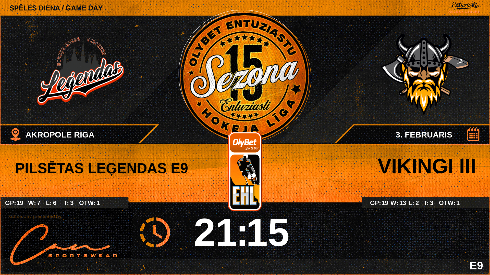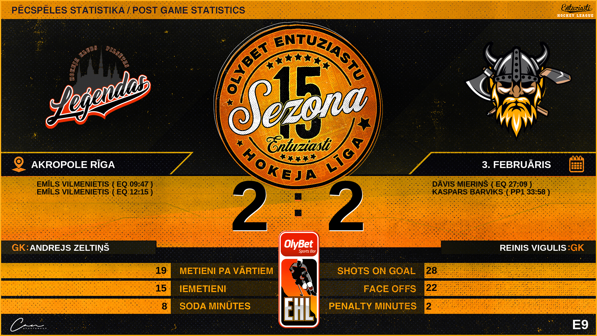 | 00:00 | PL9 | GK In | #35 Andrejs Zeltiņš |