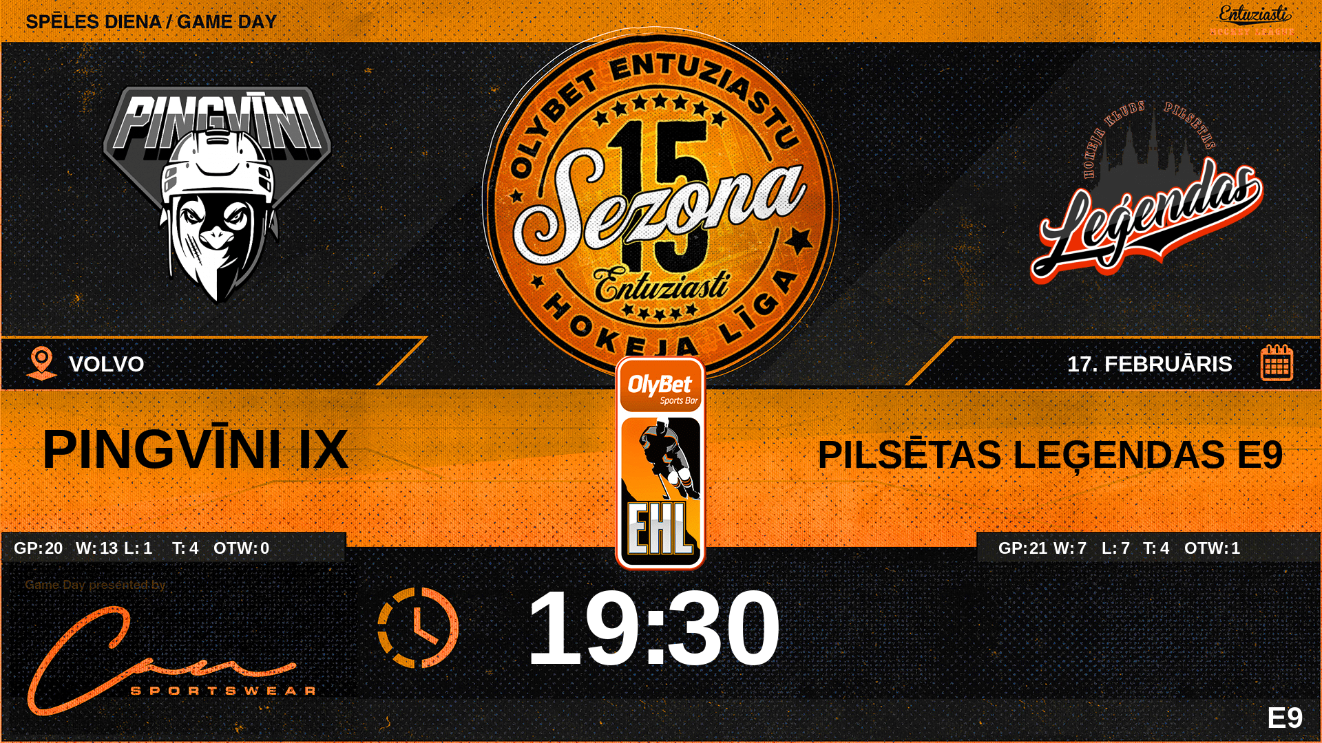 | 00:00 | PL9 | GK In | #35 Andrejs Zeltiņš |