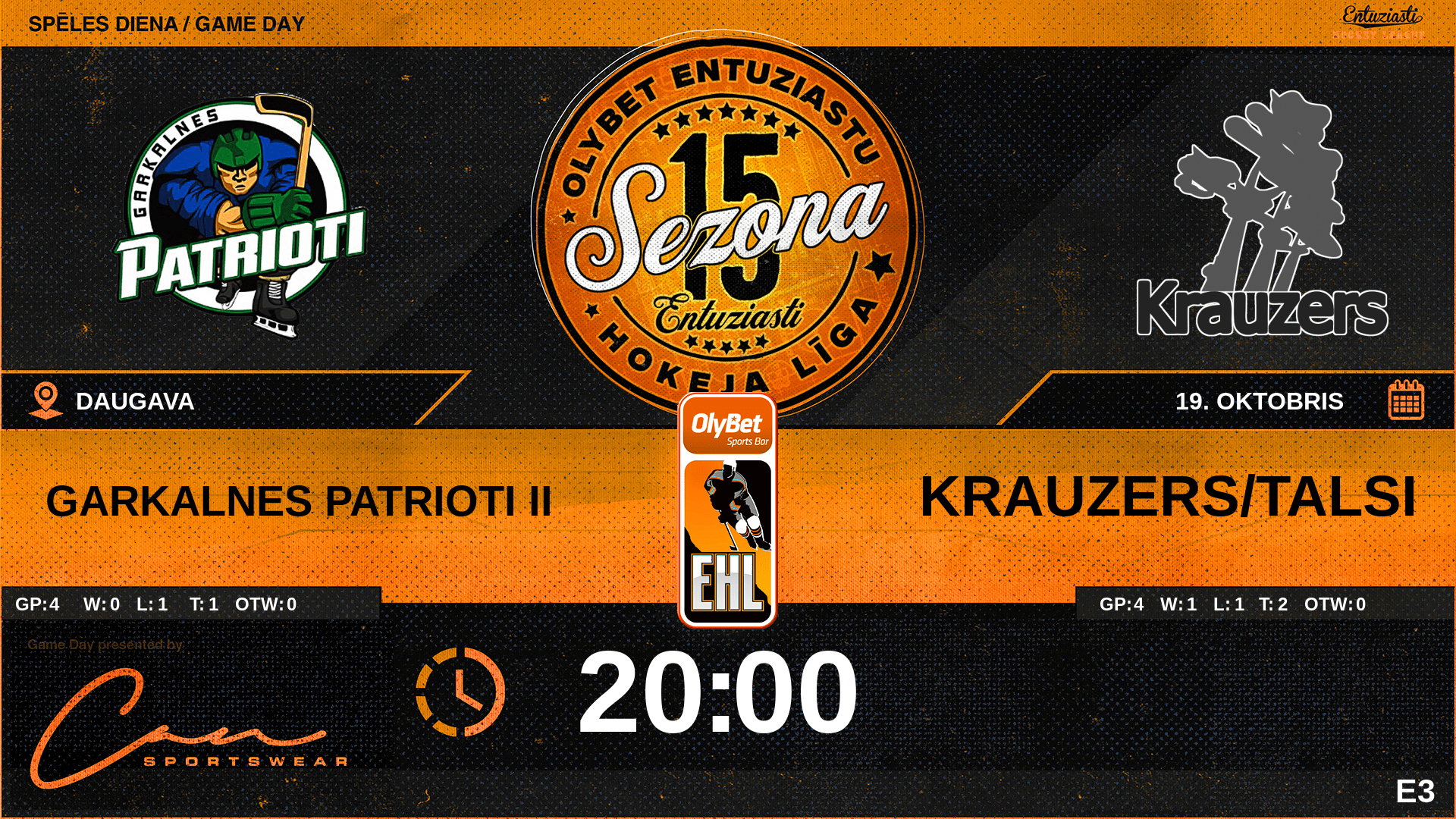 | 00:00 | KRZ | GK In | #1 Gustavs Huhka |
