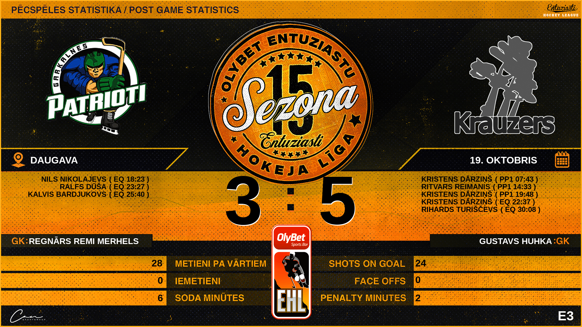 | 36:00 | KRZ | GK Out | #1 Gustavs Huhka |
