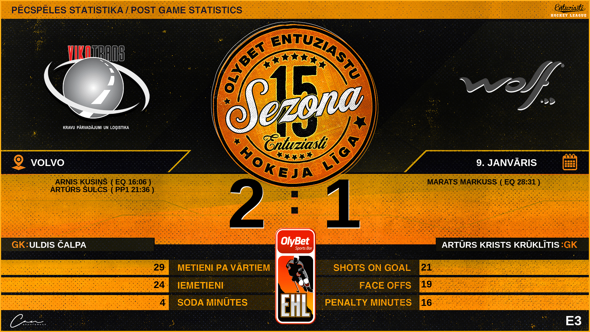 | 28:31 | WL2 | Vārti (EQ) | #28 Marats Markuss, piespēles: #97 Valts Peleckis, #14 Mikus Ābelītis |