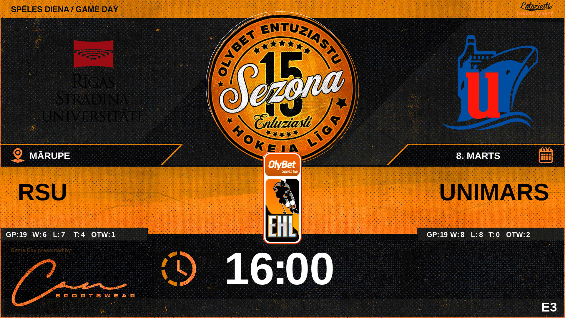 | 00:00 | RSU | GK In | #3 Markuss Brants |