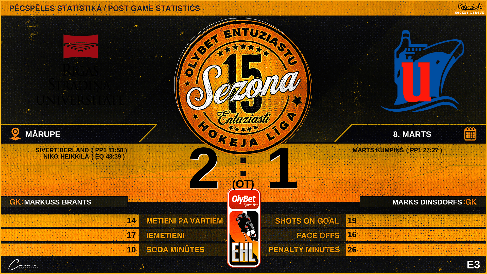 | 27:27 | UNI | Vārti (PP1) RSU 1 : 1 UNI | #91 Marts Kumpiņš, piespēles: #77 Kārlis Ezers |