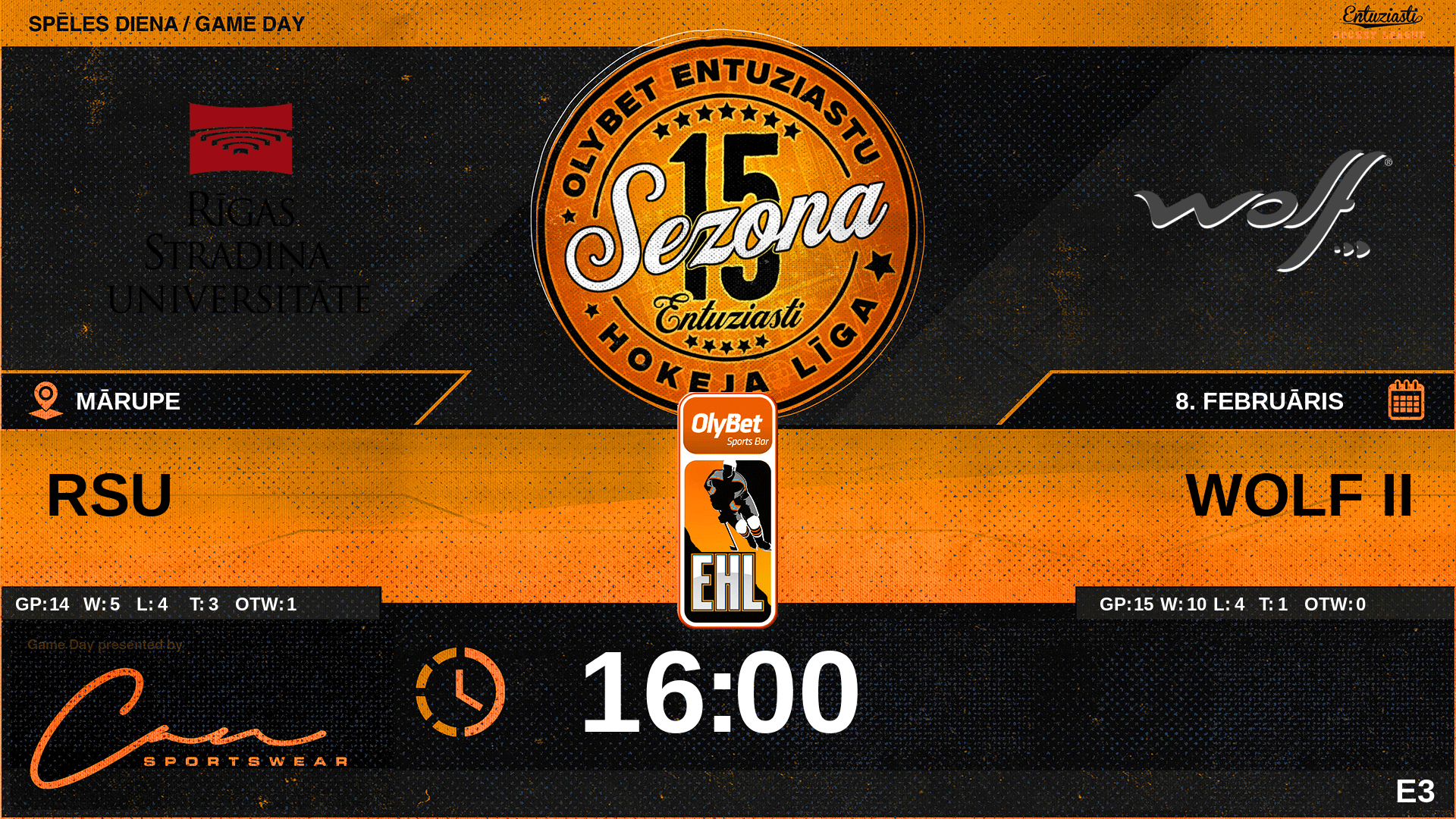 | 06:10 | WL2 | Vārti (EQ) RSU 0 : 3 WL2 | #19 Kaspars Porejs, piespēles: #46 Mārtiņš Barkāns |