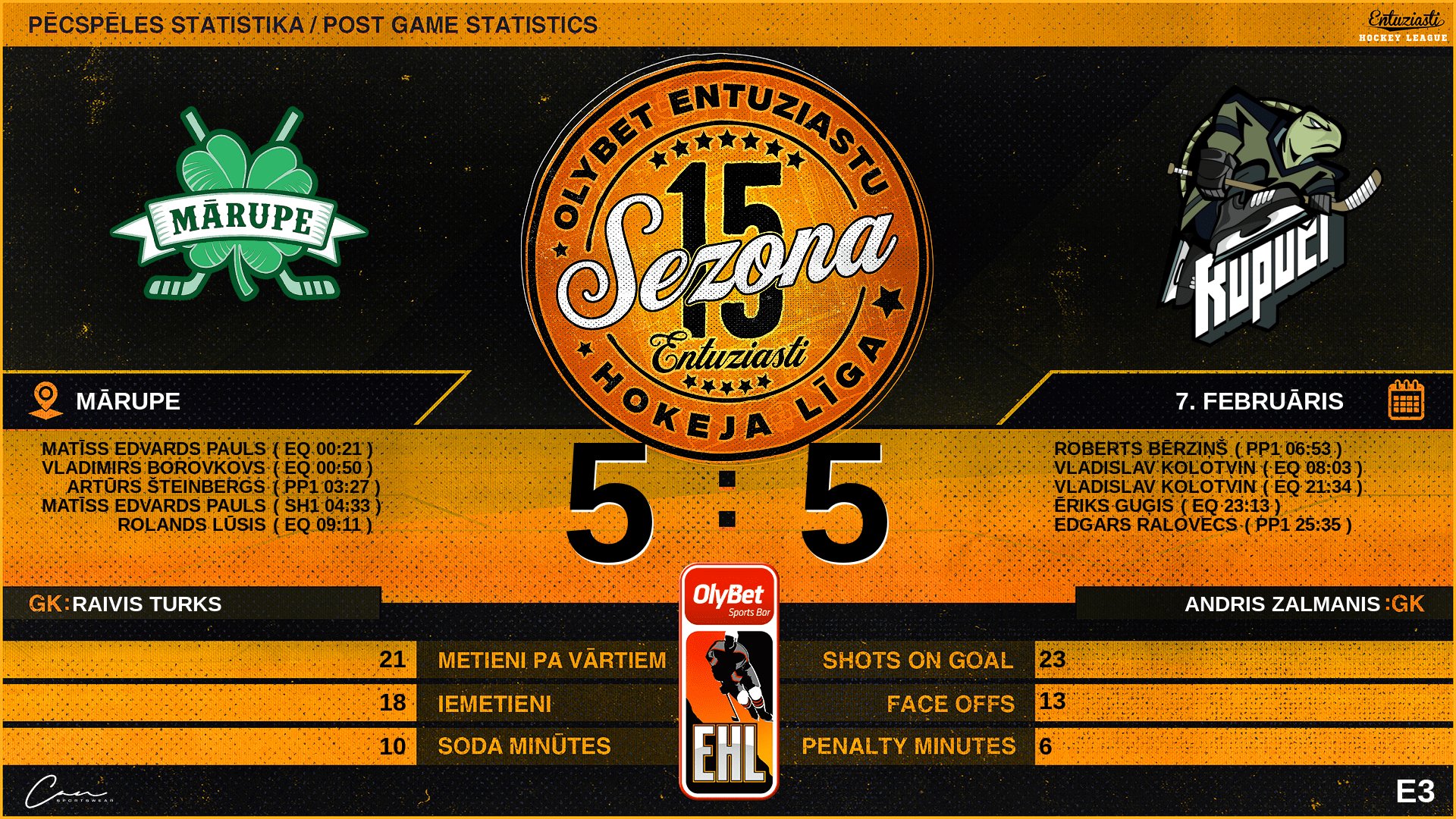| 00:50 | MRP | Vārti (EQ) | #23 Vladimirs Borovkovs, piespēles: #78 Ivars Plaudis-Lasmanis |