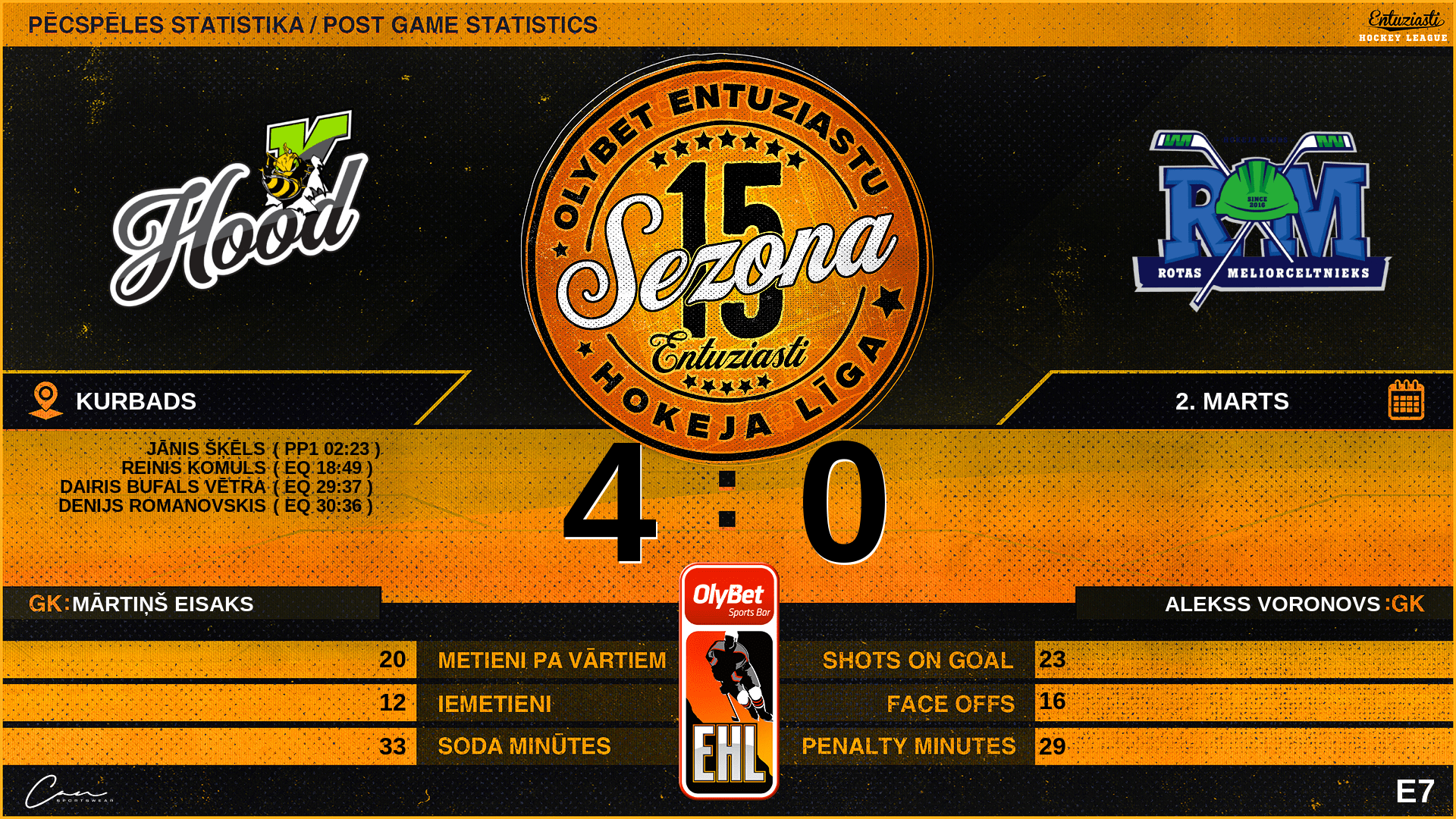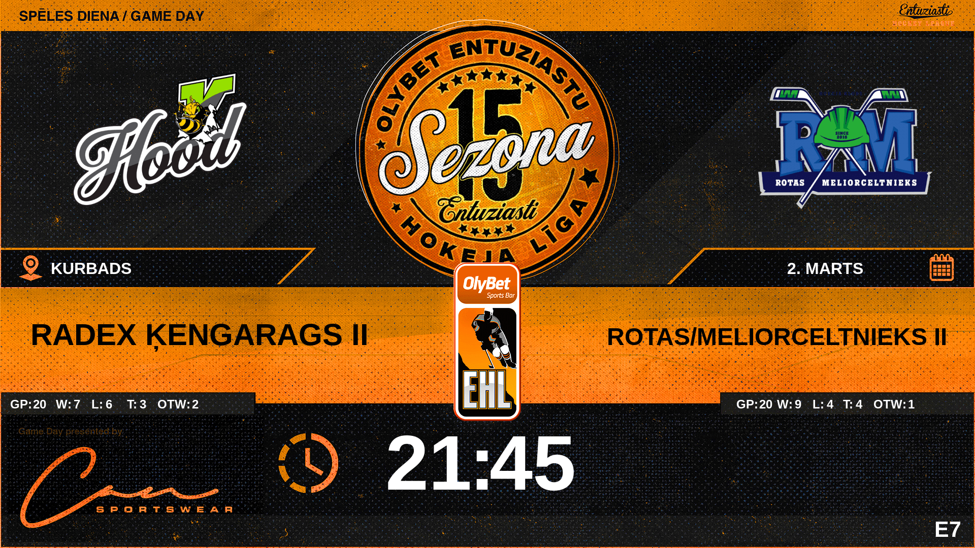 | 18:49 | KNG | Vārti (EQ) KNG 2 : 0 RT2 | #98 Reinis Komuls, piespēles: #26 Dairis Bufals Vētra |