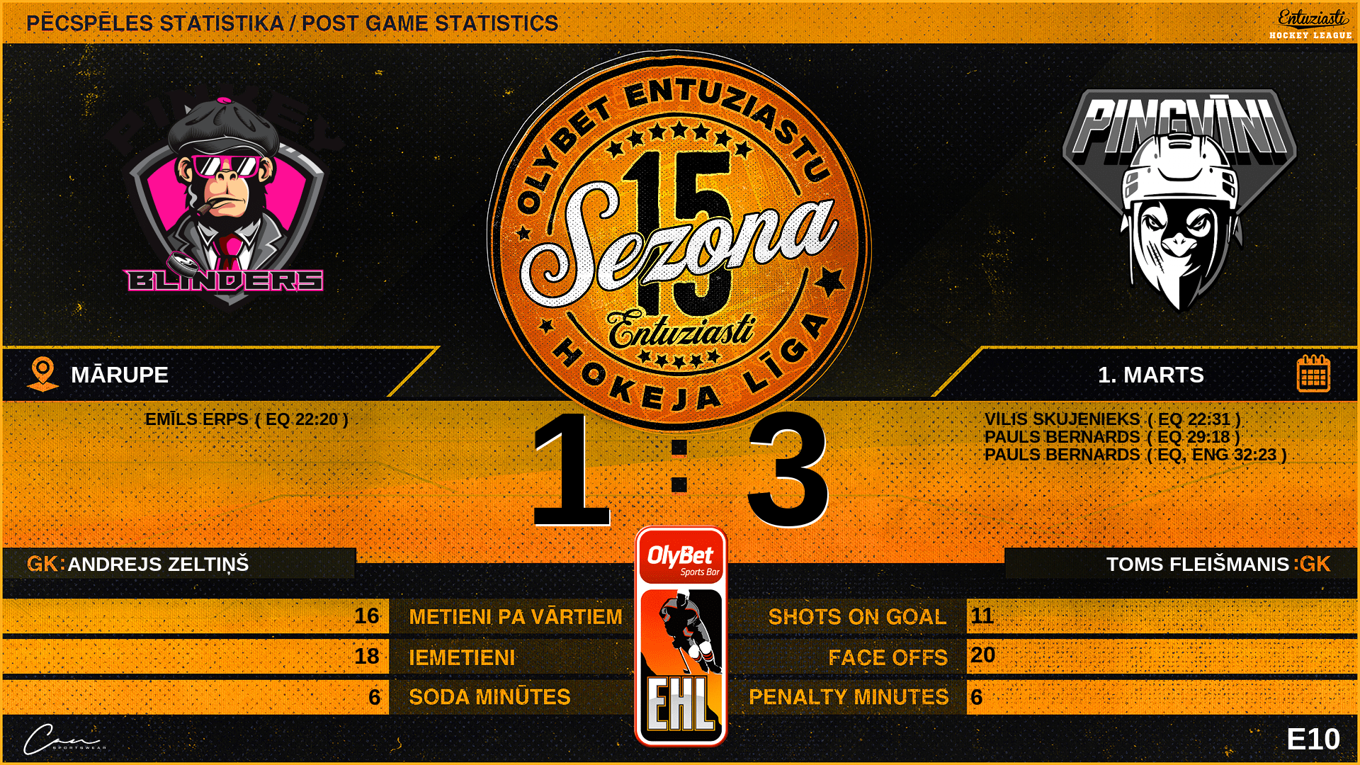 | 32:23 | PB2 | GK In | #27 Andrejs Zeltiņš |