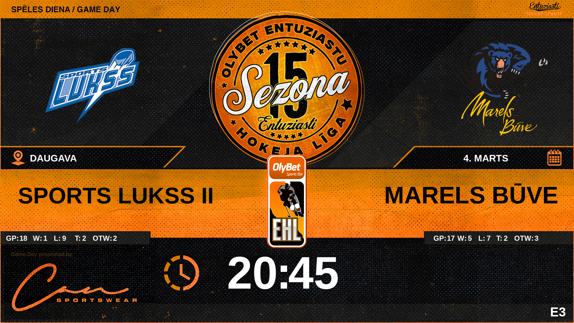 | 00:00 | SP2 | GK In | #19 Reinis Saliņš |