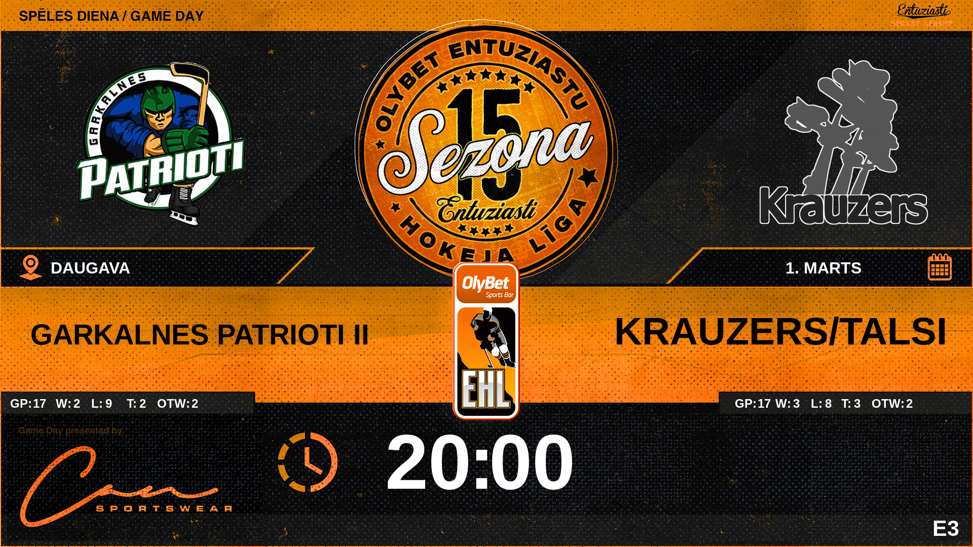 | 00:00 | KRZ | GK In | #1 Gustavs Huhka |