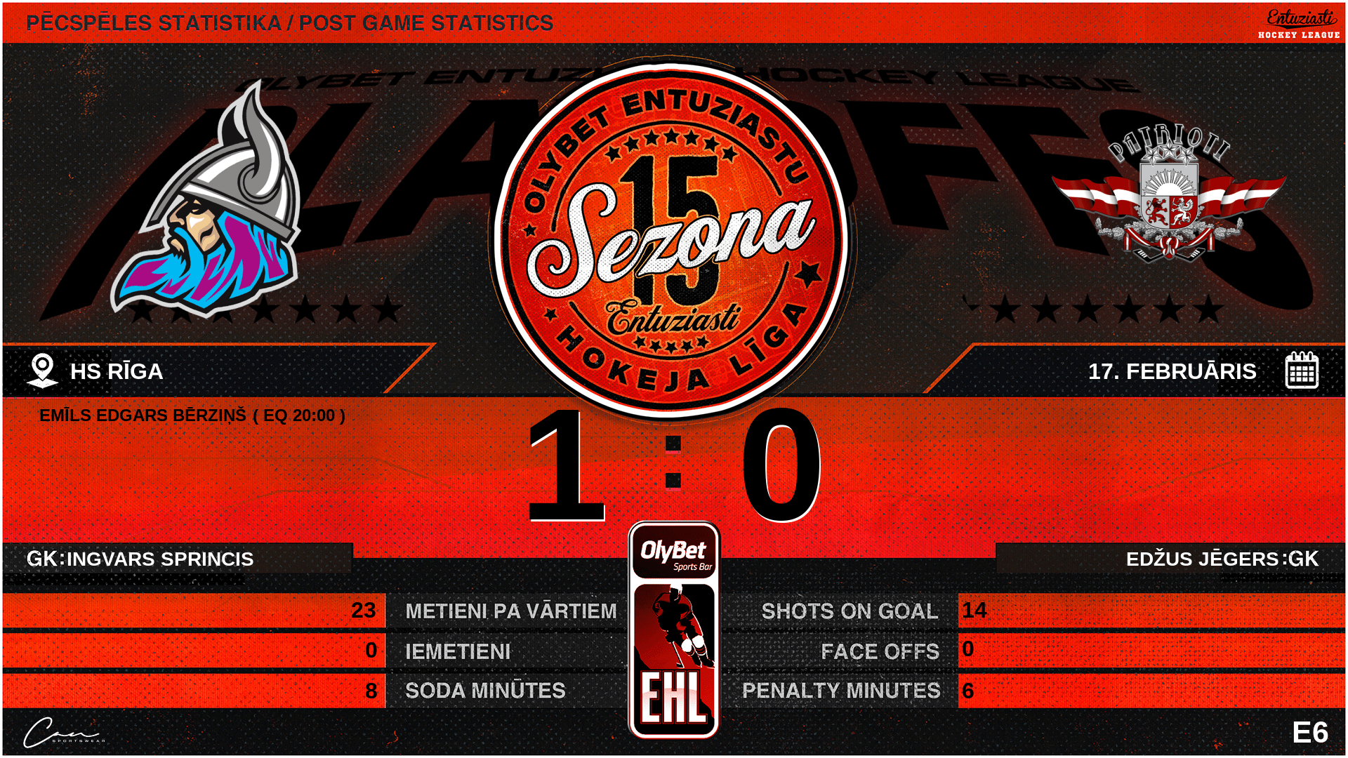 | 15 | Endijs ĢEŅĢERGAILIS | D | 0 | 0 | 0 | 4 |