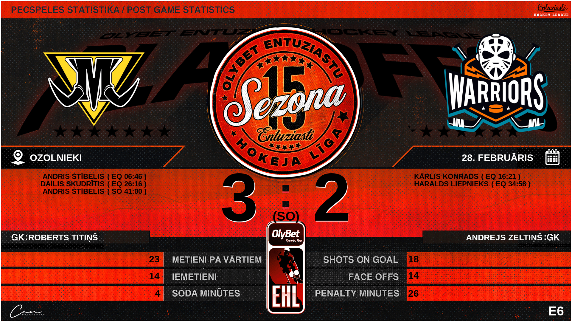 | 06:46 | MTH | Vārti (EQ) MTH 1 : 0 WRS | #27 Andris Štībelis, piespēles: #11 Sanijs Gauja, #81 Dailis Skudrītis |