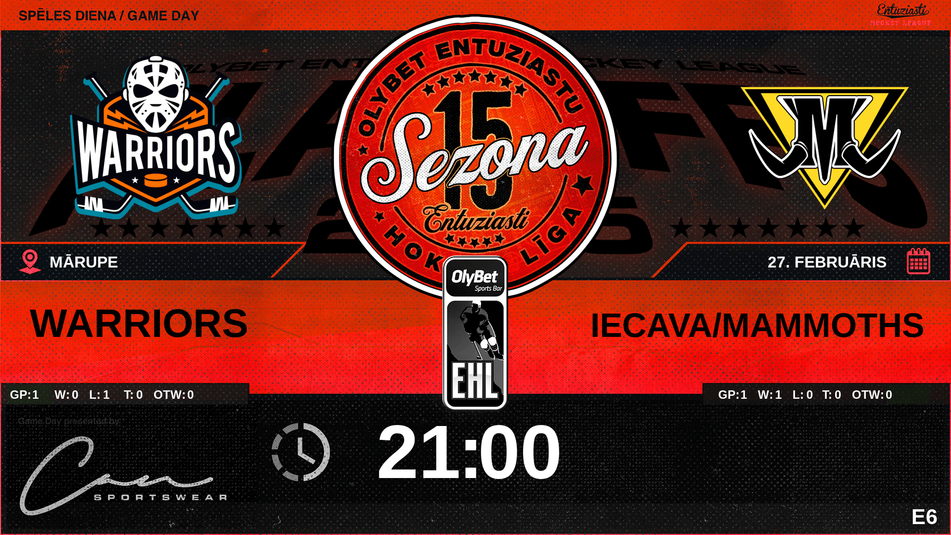 | 00:00 | WRS | GK In | #70 Andrejs Zeltiņš |