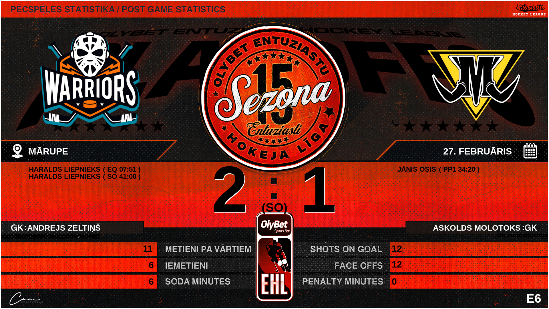 | 41:00 | WRS | Vārti (SO) WRS 2 : 1 MTH | #93 Haralds Liepnieks |