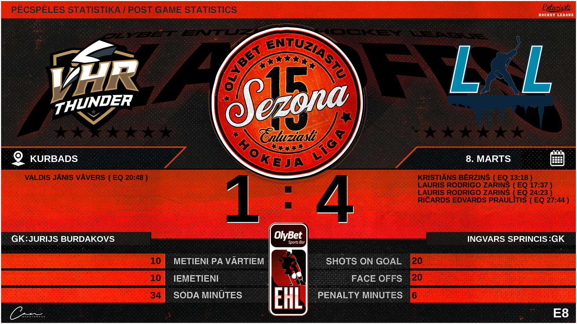 | 36:00 | VHR | GK Out | #1 Jurijs Burdakovs |