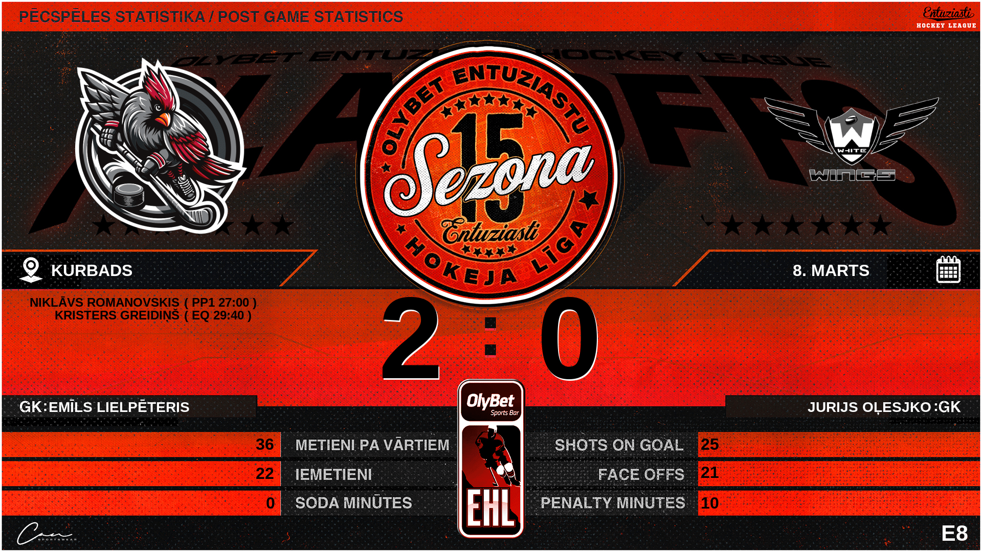| 36:00 | PLK | GK Out | #88 Emīls Lielpēteris |