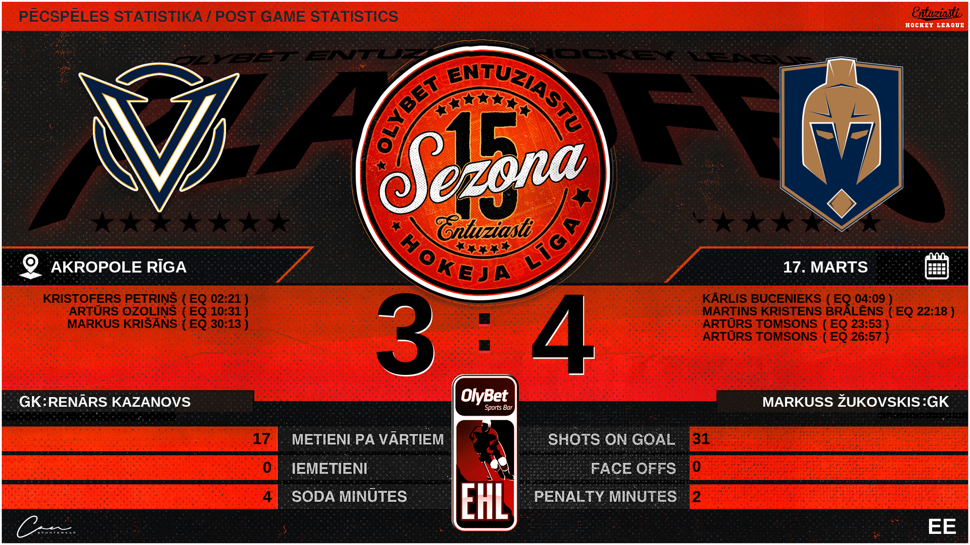 | 36:00 | VLM | GK Out | #1 Markuss Žukovskis |