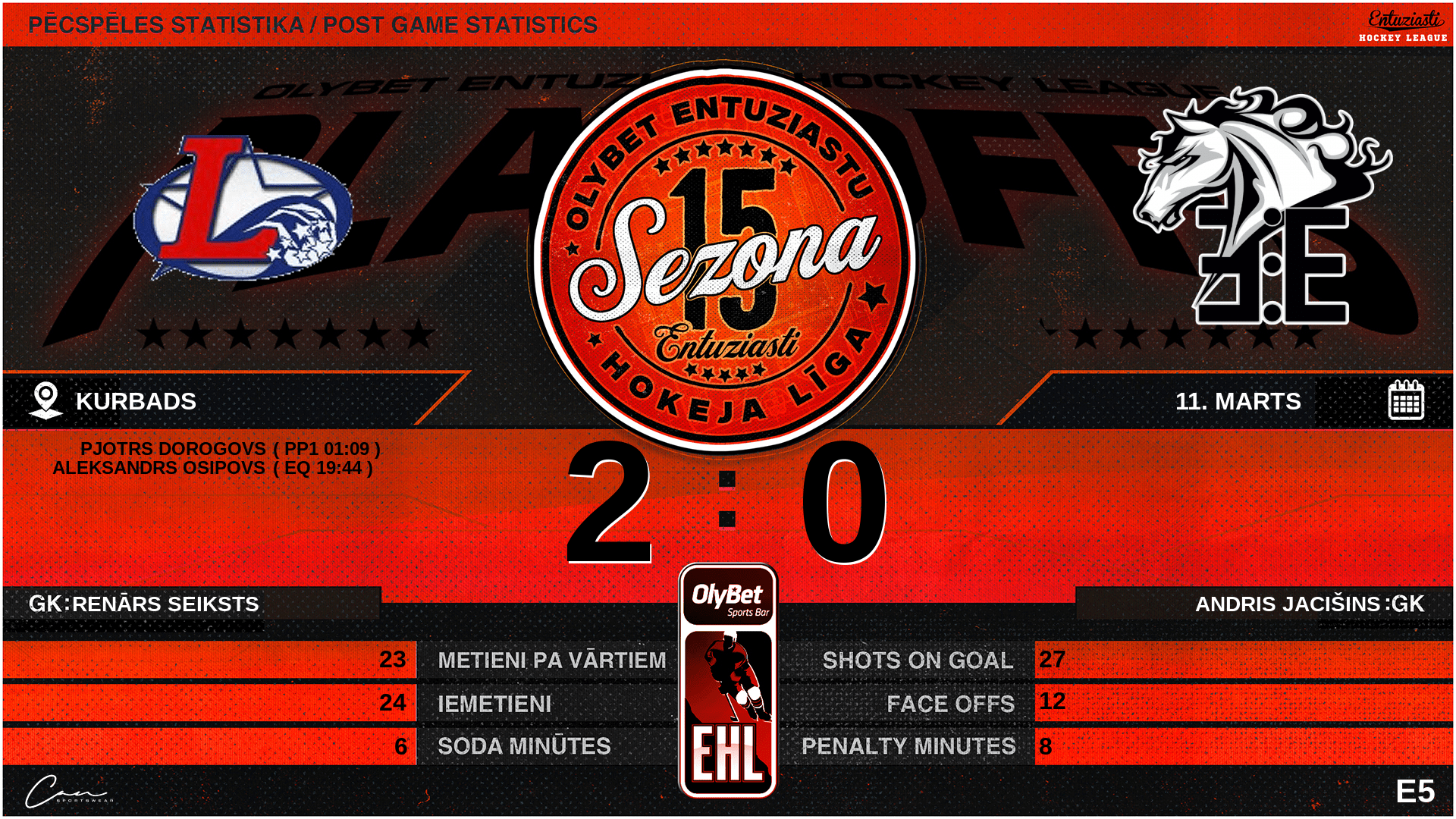 | 19:44 | LA2 | Vārti (EQ) LA2 2 : 0 USN | #17 Aleksandrs Osipovs, piespēles: #44 Rolans Kravčenko, #99 Vasilijs Dibrivnijs |