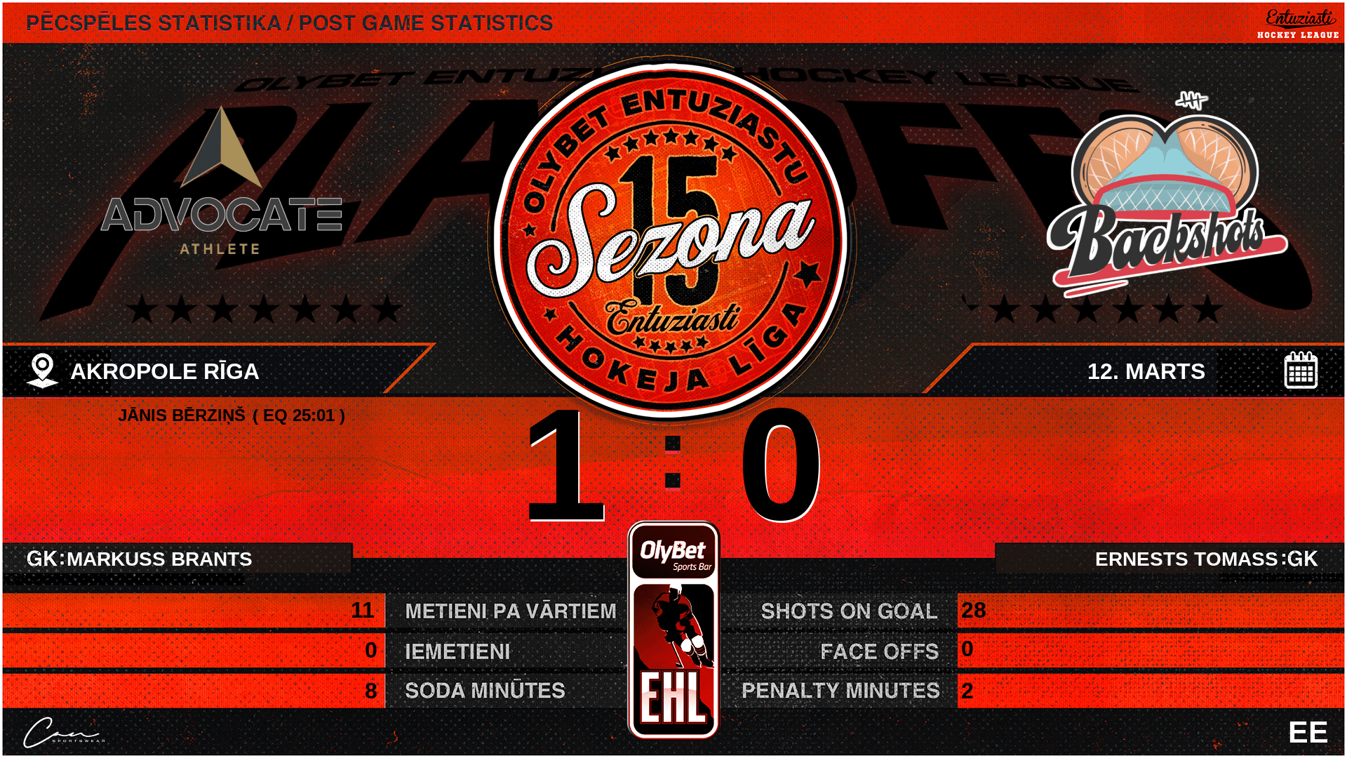 | 35:00 | ADV | GK Out | #1 Markuss Brants |