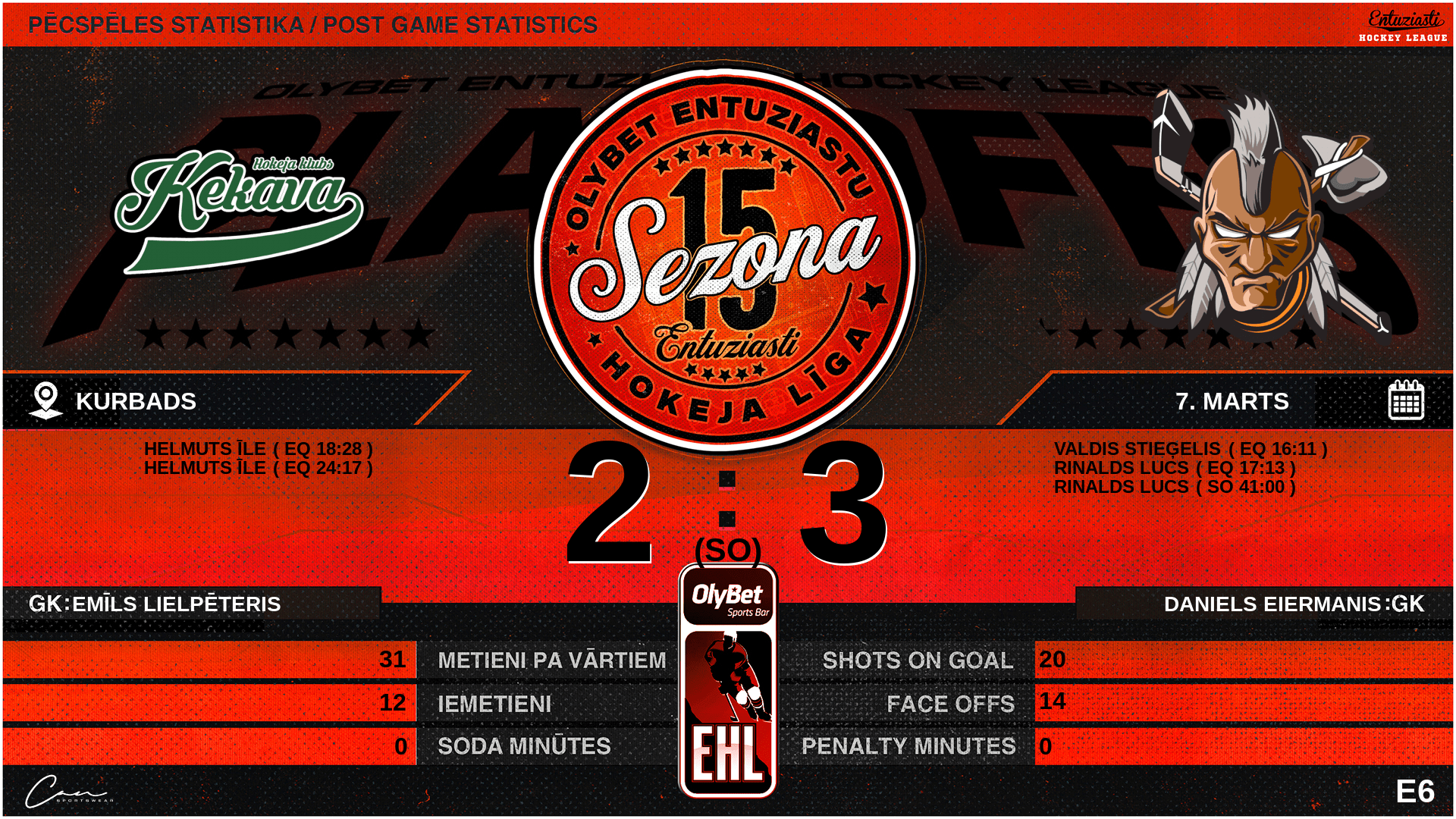 | 41:00 | ĶE2 | GK Out | #2 Emīls Lielpēteris |