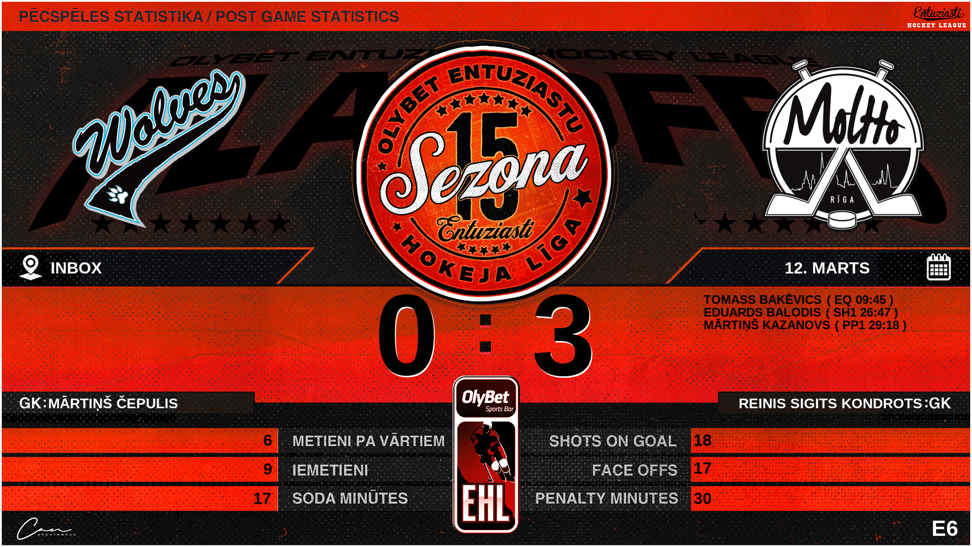 | 00:00 | WF3 | GK In | #30 Mārtiņš Čepulis |